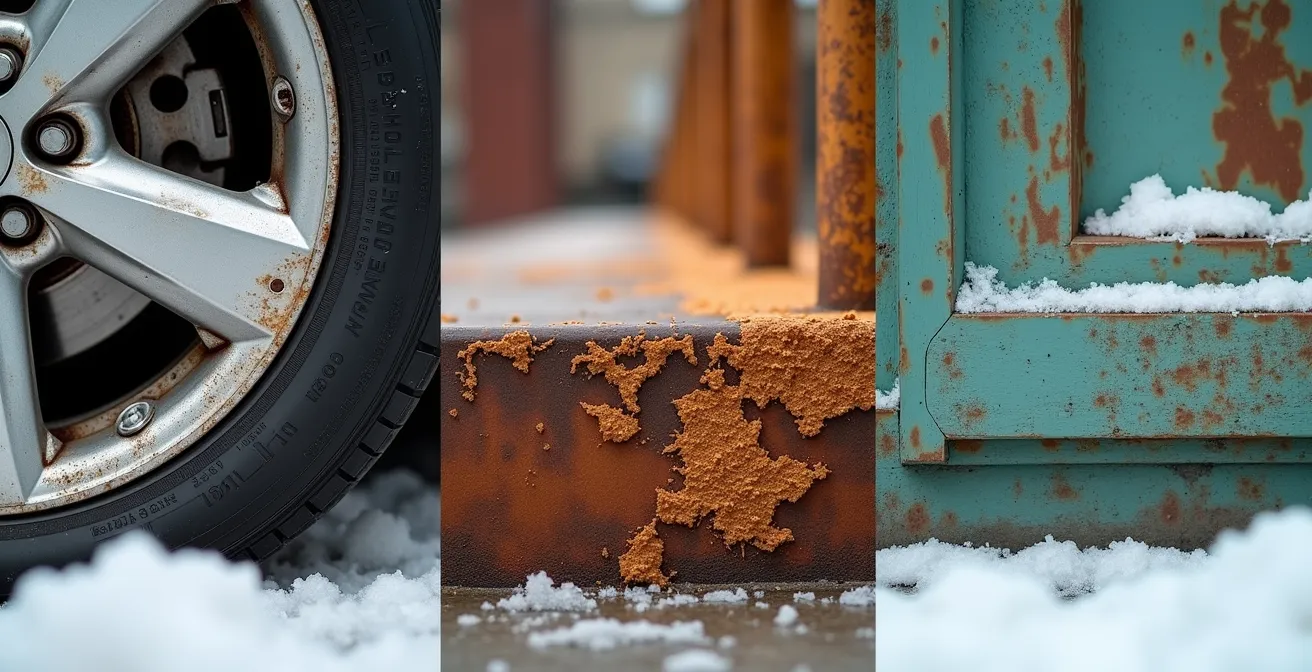Le climat québécois, avec ses hivers longs et rigoureux, impose l’utilisation massive de sels pour sécuriser les routes. Une publication du journal Le Claireur Progrès souligne que ce sel est l’un des principaux accélérateurs de l’oxydation pour les véhicules. Pour l’aluminium, il ne provoque pas la rouille rouge classique, mais une oxydation blanche caractéristique. Cette dernière n’est pas seulement un problème esthétique ; elle peut fragiliser le métal si elle n’est pas traitée, affectant jantes, cadres de fenêtres et autres structures exposées.